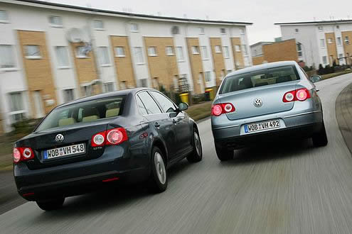 Если сравнивать друг с другом Passat и Jetta, первое что приходит в голову: Passat - чуть больше. У старшего фольксвагена чуть больший багажник, он оснащен немного более благородно, за это, естественно, стоит немного дороже. Ключевое слово здесь: немного! Passat с двигателем 2.0 в варианте Comfortline стоит минимум 30500 $. Jetta с тем же 150-сильным мотором, в той же комплектации Comfortline доступна за 28901$. Как видите, разница невелика, но это классовое различие. Стоит ли заплатить больше за Пассат, автомобиль классом выше?